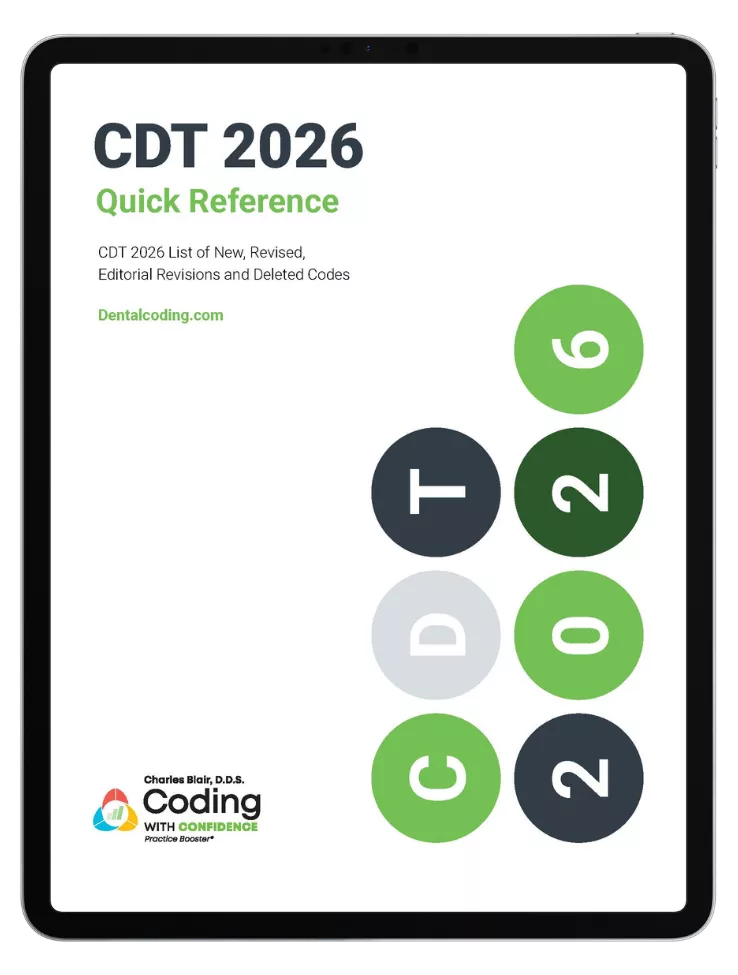 The CDT 2026 Quick Reference Guide shows your team – at a glance- what’s new, what’s changed, and what should no longer be used, so coding stays accurate and reimbursement stays on track.